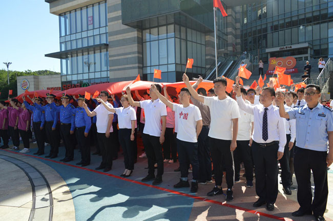 宣誓完畢后,所有人共同合唱《沒有共產(chǎn)黨就沒有新中國》,伴隨著嘹亮的歌聲,一面黨旗在隊伍上面緩慢展開,站在黨旗下,很多黨員眼泛淚花,內心的自豪感油然而生,感謝偉大的黨、偉大的祖國為我們創(chuàng)造了這么美好的幸福生活,這也把整個活動推向了高潮。