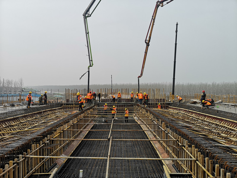 沭陽縣城區(qū)快速路二期工程威海路(臺州路-義烏路)標(biāo)段,全長4.162km。起點順接現(xiàn)狀威海路,向東沿沂南河大堤至義烏路后折向南,終點位于蕭山路交叉口。主線采用雙向六車道,兩側(cè)地面輔道為雙向4車道,主路通過義烏路、慈溪路上架橋連接,高架橋長1.4km。主要施工內(nèi)容:道路工程、橋涵工程、排水工程、交通工程、照明工程。